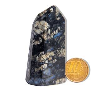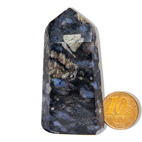 Ponta de Riolita Azul Natural – Introspecção, Cura e Harmonia Interior A Riolita Azul é uma pedra profundamente conectada aos processos de transformação emocional, autoconhecimento e cura interior. Esta ponta natural revela tons suaves de azul acinzentado, com padrões únicos e texturas que remetem a formações vulcânicas milenares — reflexo direto da origem ígnea dessa pedra. Em formato de ponta polida com base reta, a Riolita Azul canaliza sua energia de maneira direcionada, sendo ideal para meditações profundas, práticas terapêuticas, processos de desbloqueio emocional ou para quem busca harmonia entre mente, corpo e espírito. A classificação Tipo B indica peças naturais com possíveis fraturas, marcas ou imperfeições visuais, características comuns em cristais verdadeiramente autênticos, que não comprometem suas propriedades energéticas ou valor estético. Detalhes da Peça\nNome da Pedra: Riolita Azul Natural\nCor: Azul acinzentado, com nuances suaves e padrões únicos\nFormato: Ponta lapidada com base reta\nCorte: Lapidado – faces polidas, com acabamento brilhante\nClaridade: Opaco com textura naturalmente rústica\nPeso: Entre 60 a 80g (aproximadamente)\nMedidas: De 60 a 70mm de altura (podendo variar)\nClassificação: Tipo B – com possíveis imperfeições naturais\nDestaques Energéticos\nPedra da cura emocional profunda e do autoconhecimento\nEstimula os chakras do coração e do terceiro olho\nAuxilia na liberação de traumas antigos e bloqueios internos\nIdeal para terapeutas holísticos, práticas de introspecção e cura energética\nEquilibra estados mentais e promove maior aceitação pessoal\nUsos Recomendados ? Meditações profundas de reconexão interior? Ambientes de cura, como consultórios terapêuticos? Decoração com propósito espiritual e harmônico? Rituais de liberação, perdão e renovação emocional? Presente significativo para quem busca cura e evolução Um cristal de transformação silenciosa e poderosa A Riolita Azul é uma pedra para quem está pronto para mergulhar no próprio mundo interior e fazer as pazes com o passado. Sua energia suave, mas firme, ajuda a dissolver padrões emocionais nocivos, promovendo a autoaceitação e a tranquilidade. Seja em práticas espirituais ou como peça decorativa com alto valor simbólico, a Ponta de Riolita Azul será uma aliada discreta, porém potente, na sua jornada de equilíbrio e cura. Conecte-se com a sabedoria do seu interior. Viva com mais leveza. Garanta agora sua Ponta de Riolita Azul Natural e permita-se transformar com serenidade, clareza e autenticidade.