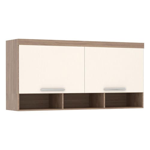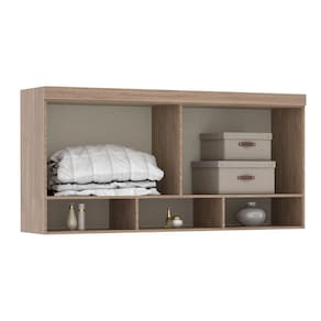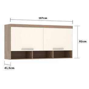 A Ponte Modulada Aérea auxilia na otimização de espaços, sua altura é perfeita para guardar objetos grandes como cobertas e travesseiros. Possui 167cm de largura, podendo ser utilizada acima de uma cama queen. Contém 2 portas de bater e 3 nichos para objetos decorativos. Com acabamento em pintura U.V. de alta definição e toque texturizado de madeira. Escala de brilho do móvel é semi-fosco.