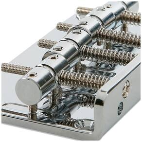 Ponte para Baixo de 4 Cordas, estilo fixa, acabamento cromado, Spirit Guitar Parts - JB6420-CR. Parafusos e chave allen para ajuste dos saddles estão incluídos. Ajuste das cordas e canhotos estão disponíveis.