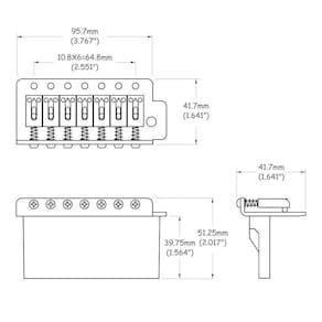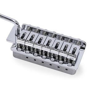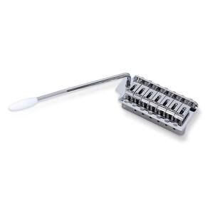 Ponte com Sistema Trêmolo completo para Guitarra de 7 Cordas com acabamento cromado e extremidade em plástico branco, modelo Stratocaster, Spirit Guitar Parts - TSM7-CR-WH. - Estilo Vintage modelo Stratocaster para guitarra de 7 cordas - Alavanca angulável e encaixe removível - Bloco em aço - Espaçamento das cordas 64.8mm