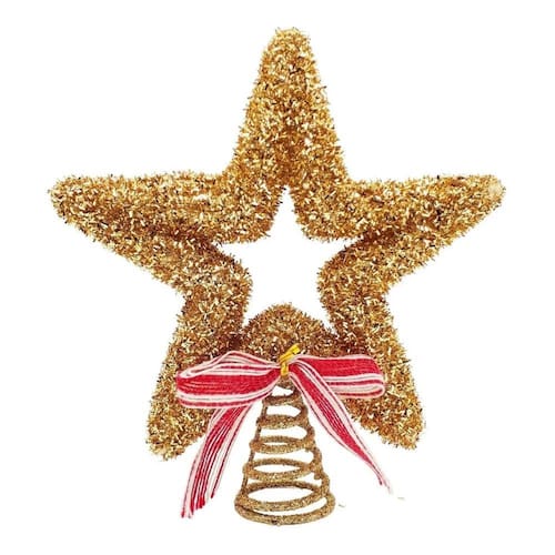 Ponteira Aramada Estrela Festão Com Laço e Glitter 20 cm