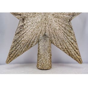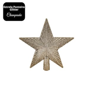 Ponteira Estrela Friso Glitter Champanhe Luxo 15cm – Topo de Árvore Natalina