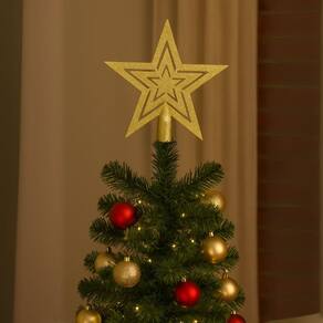 Dê o toque final à sua árvore com brilho e charme! A Estrela Ponteira Dourada Glitter Vazado é o símbolo perfeito para celebrar a magia do Natal com elegância e tradição.