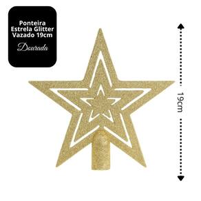 Estrela Ponteira Dourada Glitter Vazado 19cm – Enfeite para Topo de Árvore de Natal