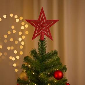 Dê o toque final à sua árvore com brilho e charme! A Estrela Ponteira Vermelha Glitter Vazado é o símbolo perfeito para celebrar a magia do Natal com elegância e tradição.