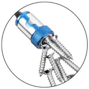 Feito do aço superior da liga do vanádio do cromo, o tratamento ultra-alto da temperatura faz a dureza mais alta. Imã com magnético forte faz com que seja fácil atrair parafusos. O anel magnético super ímã lhe ajudará a travar com precisão os parafusos reduzindo a abrasão e à cabeça de chave de fenda, estendendo a vida útil deles. Pode-se utilizar em chaves de fenda, philips e até mesmo parafusadeira.