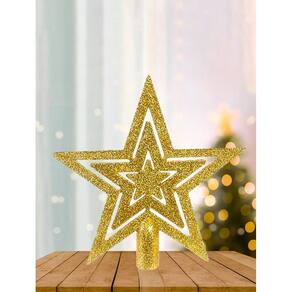Ponteira Para Arvore de Natal Estrela Vazada 13cm Glitter Decore sua avore de natal com essa linda Ponteira Estrela Esse modelo é confeccionado de material resistente e tem o design de etrela vazada para deixar sua decoração mais completa e trazendo um toque de luxo pra sua arvore Essa ponteira estrela traz todo espírito natalino e um toque elegante para a sua arvore nessa época linda e importante que é o Natal. Possui 13 cm e de facil encaixe Adquira já