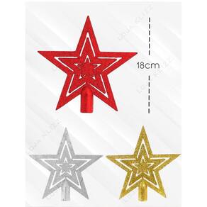 Ponteira Para Arvore de Natal Estrela Vazada 18cm GlitterDecore sua avore de natal com essa linda Ponteira EstrelaEsse modelo é confeccionado de material resistente e tem o design de etrela vazada para deixar sua decoração mais completa e trazendo um toque de luxo pra sua arvoreEssa ponteira estrela traz todo espírito natalino e um toque elegante para a sua arvore nessa época linda e importante que é o Natal.Possui 18 cm e de facil encaixe Adquira jáFICHA TÉCNICAMaterial: PlásticoMedidas:18 cmCARACTERÍSTICASResistenteLindaVazadaFácil encaixeAguardamos seu pedidoObrigado pela preferência Marca: Klizz Ean: 7798429554190