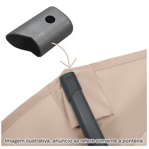 Ideal para substituir peças danificadas ou desgastadas em seu ombrelone, a peça de reposição é feita de material resistente e durável, garantindo fácil instalação e segurança. Este produto é de uma peça que vai na ponta da vareta do ombrelone.