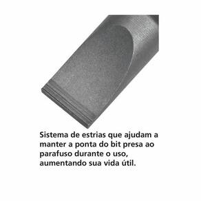 Sistema de estrias que ajudam a manter a ponta do bit presa ao parafuso durante o uso, aumentando sua vida útil.