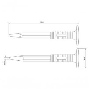 Modo de uso: Use óculos, luvas e outros equipamentos de proteção de acordo com a tarefa a ser executada. Utilize talhadeiras e ponteiros em superfícies ou componentes de dureza inferior a suas arestas de corte ou pontas. Descarte qualquer talhadeira ou ponteiro que apresente rachaduras, sinais de uso excessivo ou que tenham a face de impacto deformada. Golpeie as talhadeiras e ponteiros perpendicularmente às faces de impacto. Armazene em local limpo e seco.