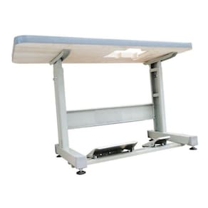 As máquinas Yamata acompanham estante com regulagem de altura que seguem os padrões de conforto e ergonomia para o operador, além de tampo em madeira revestido em fórmica com régua graduada.