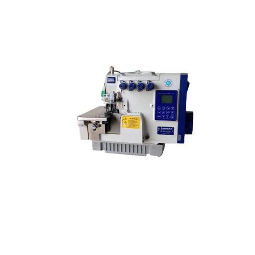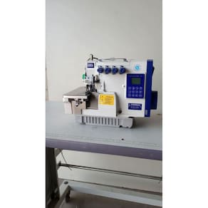 Overloque Ponto Conjugado com 2 agulhas e 4 linhas. Máquina eletrônica Direct Drive, possui control box e painel de comando, embutido no cabeçote.