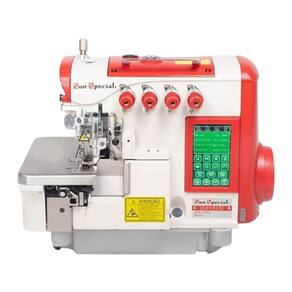 Ponto cadeia, 4 fios, eletrônica, elétrica, com motor de passo, control box acoplado ao cabeçote, painel touch screen embutido ao cabeçote, altura do calcador 5,5mm, com bluetooth para ouvir musica, com usb para carregar smartphones, 7000ppm, com sucção