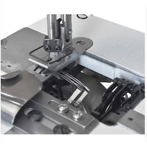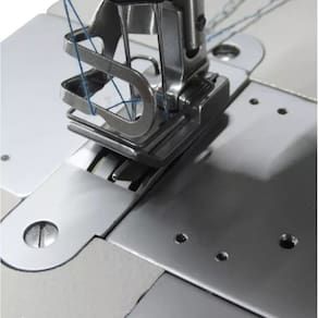 Máquina reta industrial ponto corrente com 2 agulhas paralelas para reforço ombro a ombro ou fechamento lateral de calças e camisas. Possui função de parada de agulha superior e inferior, painel de comando de fácil acesso com funções como: ajuste de velocidade, de parada de agulha automática e acesso ao parâmetro técnico. Utiliza looper independente que permite mudar a posição da agulha facilmente. Acompanha uma luminária embutida no cabeçote. Caixa de controle acoplada ao cabeçote da máquina que simplifica a montagem. Motor Eletrônico (Direct-Drive) ligado diretamente ao eixo principal que proporciona maior agilidade na partida da máquina por não utilizar correia. Muito mais silenciosa e econômica, ideal para quem trabalha em casa. Máquina de Costura Completa com Mesa Fórmica, Pé de Ferro e Motor acoplado ao cabeçote.Funções