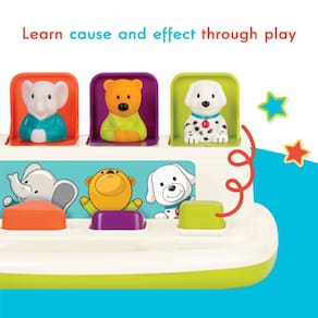 Battat — Brinquedo de causa e efeito — Brinquedo de desenvolvimento com botões e cores — Brinquedos para animais que selecionam cores — Para crianças, bebês e bebês — 18 meses ou mais — Pop-Up Pals