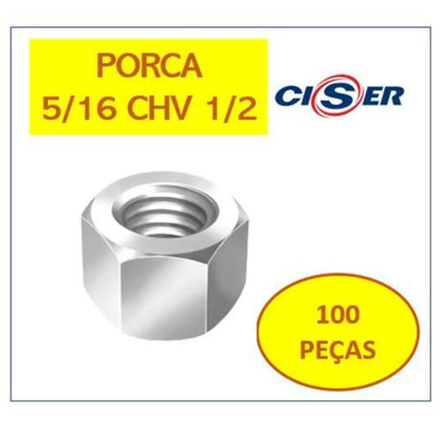 Porca De Parafuso 5/16 Chv1/2 Sextavada Zincada 100 Pçs