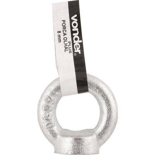 Conteúdo da embalagem1 porca olhalAplicações e dicas de usoIndicada para proporcionar um ponto de ancoragem e fixação, facilitando a movimentação de cargas e equipamentos em geralDestaques e diferenciaisFabricada e testada conforme a Norma DIN 580, galvanizada a fogo, proporcionando melhor resistência à oxidação/corrosão DETALHES TÉCNICOS Diâmetro da rosca da porca com olhal: 24,0 mm Diâmetro da base do olhal d1 : 50,0 mm Diâmetro externo do olhal d2 : 90,0 mm Diâmetro interno do olhal d3 : 50,0 mm Espessura da base do olhal C : 20,0 mm Espessura superior do olhal K : 20,0 mm Espessura inferior do olhal M : 24,0 mm Carga de trabalho da porca com olhal: 1,27 t Carga de ruptura da porca com olhal: 5,08 t Fator de segurança da porca com olhal: 4:1 Norma DIN: 580 Marca: Não Informado Ean: 7893946165406