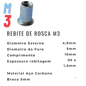 Rebite Rosca Interna M3 Porca Arrebite Aba Plana - 100 peças