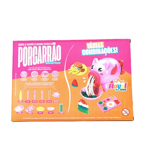 Transforme a brincadeira em uma cozinha divertida com o Porcarrão! Uma máquina criativa que molda massinha de modelar em fios de macarrão colorido, estimulando a imaginação e a coordenação das crianças de forma alegre e interativa.
