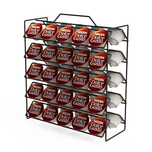 Organizador porta suporte 50 cápsulas café dolce gustoO organizador para cápsulas de café permite a separação dos sabores e possui capacidade para comportar 50 cápsulas de café. Ideal para ficar no cantinho do café, levando organização e praticidade para esse espaço. Também pode ser utilizado com cápsulas de cafés de outras marcas compatíveis com a cafeteira dolce gusto.Além do tradicional tratamento superficial - onde são aplicadas até 4 camadas de metal - os produtos são revestidos com uma camada extra do protetivo especial rust free, garantindo cores vivas e brilhantes, além de maior resistência contra ferrugemEspecificações:- matéria-prima: aço carbono- cor/acabamento: dourado ou preto- capacidade: 50 cápsulasMedidas:- profundidade: 13 cm / largura: 29 cm / altura: 32 cm