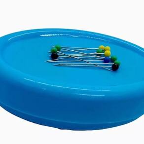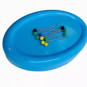 Alfineteiro magnético com 10 alfinetes já inclusos, ideal para manter seus alfinetes organizados, evitando a perca dos mesmos. Os alfinetes inclusos possuem uma cabeça colorida, permitindo maior diferenciação entre eles além de tornar o manuseio mais prático. Quantidade: 01 und Cor: Azul Composição: Plástico, Magnetita