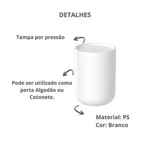 Porta Algodão Bold O porta algodão bold é a solução perfeita para manter o su banheiro organizado e acessível. Com design minimalista e bordas arredondadas, ele se integra facilmente a qualquer decoração de banheiro. Fabricado em material PS. Características do Produto: Medidas: