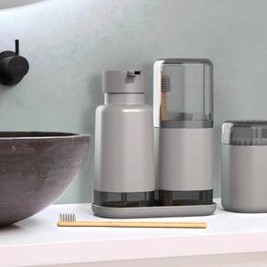 Com design geométrico e bordas arredondadas, o porta algodão possui tampa translúcida que permite uma boa visualização do conteúdo, além de ser compacto, podendo se encaixar em qualquer lugar do banheiro. Conectando-se perfeitamente com todo restante da linha.