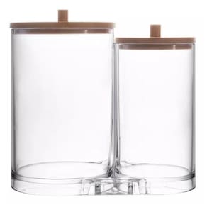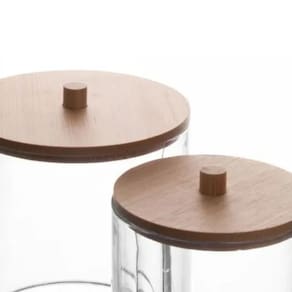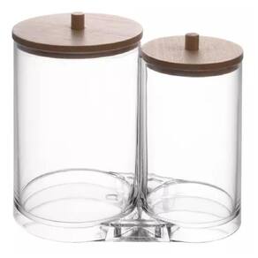 Mantenha seus itens organizados e facilmente acessíveis com o Pote Organizador Duplo. Confeccionado em plástico transparente de alta qualidade, são perfeitos para uso em qualquer ambiente que necessite de uma solução prática e elegante para armazenamento. Oferecendo funcionalidade e estilo, com sua tampa de bambu com puxador, facilita a visualização e deixa seus itens protegidos da poeira.