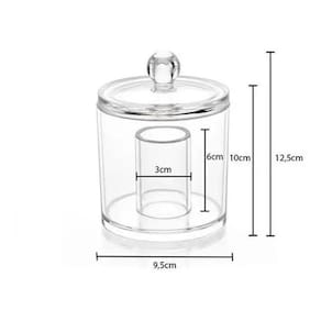 Matéria Prima: Acrílico transparente com tampa. 1 Porta Cotonete Dimensões: 9,7 x 9,7 x 12,9 cm Marca: Não Informado Ean: 7807802697956