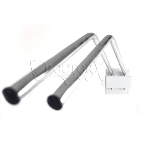 Porta avental para ser fixado à parede do tipo cabide basculante para acomodar até 2 aventais de cinza, com suporte construído em aço tratado e pintado e cabides basculantes em aço cromado. aventais não inclusos