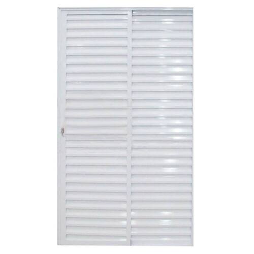 - 1 folha fixa com palhetas (lamelas) cega, 1 folha móvel com palhetas ( lamelas ) ventiladas, com fechadura bico de Papaguaio e 1 folha móvel com vidro incolor, com trinco e chave.