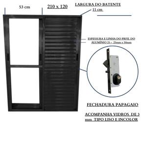Acompanha vidros de 3mm tipo liso e incolor. Vidro: Liso Ambientes Recomendados: Externo;Interno Acompanha Batedor: Não Acompanha Batente: Sim Acompanha Dobradiça: Não Acompanha Fechadura: Sim Acompanha Guarnição: Não Acompanha Manual de Instalação: Sim Acompanha Puxador: Não Acompanha Trinco: Sim Altura: 210 cm codigo_ean: 7898683669170 Cor: Preto Cor do Batente: Preto Cor do Produto: Preto Cor Predominante: Preto Dimensão da Máquina da Fechadura: 25.0000 Elétrica: Não Escala de Brilho: Semi-Brilho Espessura do Vidro: 3 mm Isolamento Acústico: Não Itens Inclusos: 1 Porta Lado de abertura: Dupla Largura: 120 cm Largura do Batente: 11 cm Linha ou Coleção: Linha 25 Manual de Montagem e Instalação: https://product-hub-prd.madeiramadeira.com.br/860832/documents/9db6b7d5-c21f-46e8-a2bf-0761607ef516struCOesdeinstalaCAobalcAo.pdf Material do Batente: Alumínio Material Principal: Alumínio Necessita Montagem: Não Número de Folhas: 03 Origem do Produto: Nacional Peso: 39 kg Possui Grade: Não Tamanho: 210 x 120 cm Textura da Porta: Veneziana Tipo de Parede: Alvenaria Tipo de Porta: Balcão Tipo de Vidro: Liso Vidro incluso: Sim Marca: Esquadrias Bergamo Ean: 7898683669170