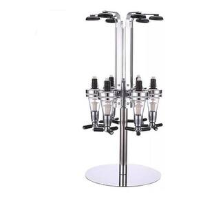 Imagine um dispenser sofisticado e capaz de servir 6 tipos de bebida ao mesmo tempo. É o caso desse moderno dosador de bebidas. Com 6 encaixes independentes, cada um deles pode ser ocupado por uma garrafa diferente. Quando acionado, o dosador libera o equivalente a uma dose (30 ml). Sua base giratória facilita a escolha de sua bebida favorita. Além de usual, tornase um item de decoração para seu bar residencial ou comercial, para sua adega ou para presentear. Marca: Lorben Material: Aço inox, alumínio e plástico Medidas do produto montado: 25x25x52cm Diâmetro da base: 25cm Quantidade de torneiras: 6 Sistema giratório com rolamento. Dose: 45ml Sistema de mola acomoda vários tamanhos de garrafa de 1 litro.B Ficha técnica - Alimentos e bebidas: Para humanos - cor: prata