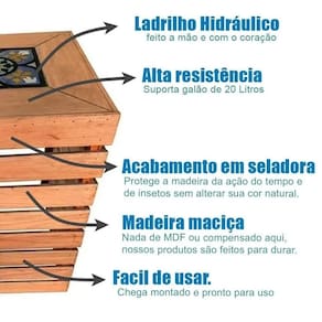 Protegido sem perder o charme da madeira, possui acabamento com Seladora, que protege a madeira da ação do tempo e de insetos além de dar brilho ao produto sem alterar sua cor . Para aumentar ainda mais a proteção, ele também recebe cera que o protege de respingos de água.