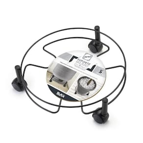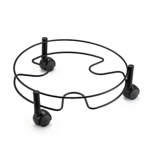 Na cor preta com pintura epóxi. Feito de aço. Contendo 3 rodinhas.