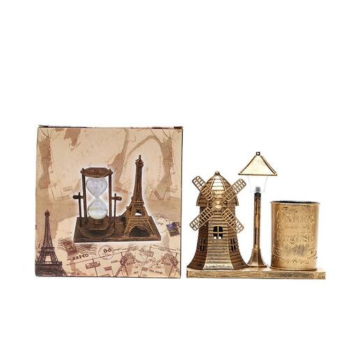 Material: plástico Tamanho: 15,5 x 7 x 15 cm Peso: 160 g Design retrô europeu — apresenta elementos de moinho de vento, poste de luz e porta-canetas com acabamento vintage para um apelo decorativo nostálgico. Organizador multifuncional — serve como porta-canetas, porta-lápis e pote para canetas, ideal para guardar canetas, lápis ou ferramentas pequenas. Função Mini Night Light — Inclui uma pequena luz embutida para iluminação ambiente suave em mesas ou mesas de cabeceira. Construção de plástico durável — Feita de plástico de qualidade com acabamento de aparência antiga, leve e resistente para o uso diário. Tamanho compacto e atraente — mede 15,5 x 7 x 15 cm e pesa 160 g, o que o torna uma adição elegante e econômica a qualquer espaço de trabalho.