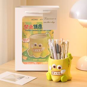 Material: resina Tamanho: 10* 9,5* 10 cm Peso: 530 g Aparência divertida de desenho animado — O design de personagens em amarelo brilhante com olhos grandes adiciona um toque alegre ao seu escritório, mesa de estudo ou decoração de casa. Construção durável em resina — Feita de resina de alta qualidade, resistente e duradoura, adequada para uso diário sem deformação. Armazenamento de grande capacidade — Design espaçoso (109,510 cm) para organizar perfeitamente canetas, lápis, tesouras, réguas e outros artigos de papelaria. Uso versátil — Ideal como organizador de mesa para escritórios, salas de aula e salas de estudo, mantendo seu espaço de trabalho organizado e divertido. Toque decorativo exclusivo — combina praticidade com criatividade, tornando-o um acessório de mesa de destaque para estudantes e profissionais.