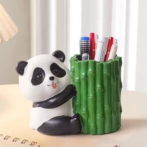 Material: resina Tamanho: 17,5* 10* 12 cm Peso: 720gDesign adorável de panda: apresenta um lindo panda abraçando um recipiente em estilo bambu, combinando design divertido de desenho animado com armazenamento prático para uso diário. Armazenamento multiuso: funciona como porta-canetas, porta-lápis ou pote para canetas, também adequado para réguas, pincéis ou outros acessórios de mesa. Material de resina durável: feito de resina de alta qualidade, forte e estável, garantindo o uso a longo prazo, mantendo seu apelo decorativo detalhado. Organizador de mesa: mantém os itens de papelaria bem armazenados em um só lugar, reduzindo a desordem e servindo como uma decoração encantadora para mesas e prateleiras. Decoração versátil: perfeita para mesas domésticas, de estudo ou de escritório, também adequada para salas de estar, entradas ou vitrines de sala de aula.
