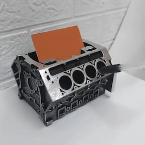 Material: Resina Tamanho: 15,5* 15,5* 12 cm Peso: 450 GV8 Design do bloco do motor: porta-canetas exclusivo com estilo de bloco de motor V8 com compartimento para cartões, perfeito para amantes de carros e decoração com tema industrial. Construção durável em resina: feita de resina de alta qualidade, resistente e duradoura, oferecendo praticidade e valor decorativo. Organizador multifuncional: funciona como um caneteiro para lápis, canetas e ferramentas, além de segurar cartões de visita ordenadamente em sua mesa. Estilo industrial mecânico: o acabamento metálico retrô aprimora mesas de escritório, oficinas ou salas de estudo com caráter de inspiração automotiva. Compacto e estável: medindo 15,5 × 15,5 × 12 cm e pesando 450 g, ele se encaixa com segurança em desktops, prateleiras ou bancadas de trabalho.