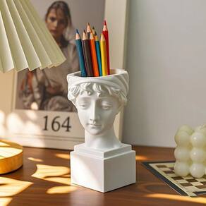 Material: vinil Tamanho: 8,6 x 5,8 x 14 cm Peso: 110 g Design elegante da estátua: porta-canetas projetado na forma de um busto feminino clássico, combinando arte e funcionalidade para um espaço de trabalho elegante. Organizador multiuso: funciona como porta-canetas, porta-lápis, pote de caneta ou organizador de mesa, também adequado para pincéis de maquiagem, batons ou flores pequenas. Material de resina durável: feito de resina de vinil de alta qualidade, leve e resistente, garantindo um uso duradouro com um acabamento artístico suave. Tamanho compacto e prático: medindo 8,6x5,8x14cm, oferece armazenamento eficiente sem ocupar muito espaço na mesa, ideal para uso doméstico ou no escritório. Organizador de mesa artístico: uma peça decorativa versátil que aprimora mesas de estudo, penteadeiras e escritórios com um toque de elegância e criatividade.