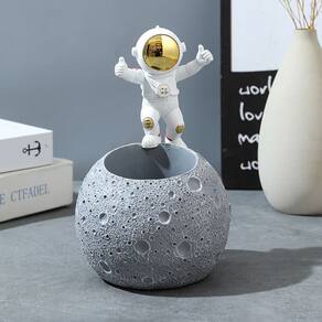 Material: Resina Tamanho: 11x11x17,5 cm Peso: Astronauta não criativa Design: estatueta exclusiva de astronauta sobre uma base em forma de lua, combinando funcionalidade com decoração atraente para mesas de escritório ou domésticas. Armazenamento de grande capacidade: o interior espaçoso permite fácil armazenamento de canetas, lápis, marcadores, tesouras e outros pequenos itens essenciais de papelaria. Material de resina durável: feito de resina de alta qualidade com excelente acabamento, garantindo estabilidade, durabilidade e uso duradouro. Organizador multifuncional: perfeito como porta-canetas, porta-lápis ou pote para canetas, também funciona como organizador de mesa para pincéis de maquiagem ou pequenas ferramentas. Decoração de mesa moderna: o design elegante do tema espacial adiciona um toque de diversão e criatividade às salas de estudo, escritórios, salas de aula e espaços de convivência. Palavras-chave genéricas = 250 porta-canetas, porta-lápis, pote para canetas, organizador de mesa, decoração de astronauta, suporte para canetas com tema espacial, recipiente para canetas de resina, armazenamento de mesa de escritório, suporte em forma de lua, organizador de papelaria, lindo acessório de mesa, armazenamento de mesa de estudo