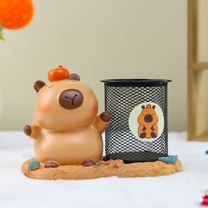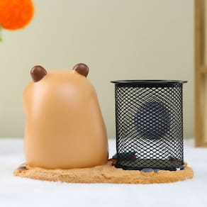 Material: resina Tamanho: 17,8* 11* 12 cm Peso: 500 g Design adorável de capivara — Apresenta uma capivara preguiçosa segurando uma bebida ao lado de um porta-canetas de malha resistente, criando um acessório de mesa divertido e exclusivo. Construção durável em resina e metal — combina decoração em resina com um caneteiro de malha metálica, garantindo durabilidade e estilo para uso a longo prazo. Grande capacidade de armazenamento — Espaçoso o suficiente para guardar canetas, lápis, marcadores, réguas, tesouras ou pincéis de maquiagem, mantendo sua mesa organizada. Funcionalidade multifuncional — funciona como porta-canetas, porta-lápis, organizador de mesa ou acessório decorativo para escritório, escola ou casa. Decoração de mesa perfeita — O design bonito e prático funciona como um enfeite de mesa, tornando-o adequado para estudantes, professores e funcionários de escritório.