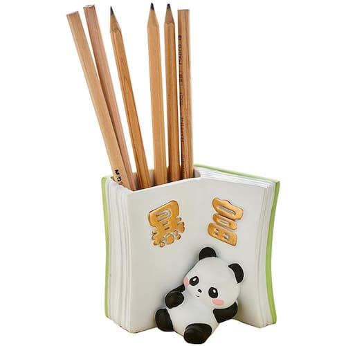 Material: resina Tamanho: 11* 8,5* 6,5 cm Peso: 1000gAdorable Panda Design: apresenta um panda de desenho animado sentado contra um recipiente em forma de livro, combinando estilo divertido com armazenamento funcional. Armazenamento multiuso: funciona como porta-canetas, porta-lápis ou pote para canetas, também adequado para pincéis de maquiagem, réguas ou pequenos materiais de escritório. Construção durável em resina: feita de resina de alta qualidade, resistente e duradoura, perfeita para uso diário em casa, escola ou escritório. Organizador de mesa: mantém canetas, lápis e artigos de papelaria bem organizados enquanto adiciona um toque decorativo à sua mesa. Decoração versátil: adequada para estudantes, professores ou funcionários de escritório, ideal para mesas em salas de aula, estudos ou espaços de trabalho.