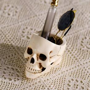 Material: resina Tamanho: 11,8* 8* 8,9 cm Peso: 195 g Design de caveira gótica — Porta-canetas realista inspirado em caveira com esculturas detalhadas, adicionando um tema gótico e de terror ousado a qualquer espaço de trabalho ou sala. Material de resina durável — Feito de resina de alta qualidade, este porta-lápis é forte, estável e duradouro para uso decorativo e prático. Funcionalidade versátil — Pode ser usada como caneta, organizador de mesa, base de vela, bandeja de sabão ou recipiente de armazenamento criativo para pincéis e ferramentas. Tamanho compacto e prático — Medindo 11,8 × 8 × 8,9 cm, este porta-canetas Skull se encaixa perfeitamente em mesas, prateleiras ou bancadas sem ocupar muito espaço. Decoração gótica perfeita — Uma decoração de caveira atraente, adequada para temas de Halloween, interiores góticos ou vitrines exclusivas de mesa para casa e escritório. Palavras-chave genéricas = 250 porta-canetas, porta-lápis, pote de caneta, organizador de mesa, porta-canetas de caveira, organizador de mesa de resina, porta-lápis gótico, decoração de caveira de Halloween, copo de armazenamento de papelaria, base de vela de caveira, pote de caneta de estilo gótico