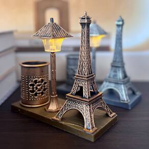 Material: plástico Tamanho: 15,5* 15,5* 6,5 cm Peso: 150 g Design inspirado em Paris — apresenta uma Torre Eiffel em miniatura e uma lâmpada de rua combinadas com um porta-canetas, criando um acessório de mesa charmoso e vintage. Material plástico durável — Feito de plástico de alta qualidade, leve e resistente, ideal para uso a longo prazo. Armazenamento funcional — funciona como porta-canetas, porta-lápis ou pote para canetas, perfeito para organizar canetas, lápis, réguas e outros artigos de papelaria. Compacto e decorativo — Medindo 15,515,56,5 cm e pesando 150 g, ele combina praticidade com design atraente. Organizador de mesa elegante — Uma decoração criativa com tema parisiense que aprimora as mesas em escritórios, salas de aula ou áreas de estudo em casa.