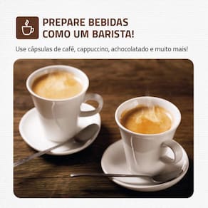 PREPARE BEBIDAS COMO UM BARISTA! A cafeteira Dolce Crema permite que você prepare bebidas como um barista e explore uma variedade de sabores. Você pode fazer espressos de maneira superprática, com cápsulas, e preparar espuma de leite cremosas para criar diversas bebidas, como cappuccino, mocha, macchiato, frappuccino e muito mais. Crie suas receitas de Lattes favoritas!