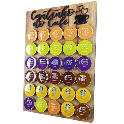 Nada como tomar aquele café expresso feito na hora é E ainda mais poder escolher de forma prática seu sabor predileto, já pensou Pensando nisso trazemos aqui para você nosso exclusivo e moderno porta cápsulas para cafeteira DOLCE GUSTO. Um produto para quem gosta de organização e praticidade, pois com ele você organiza suas cápsulas e ainda por cima decora seu cantinho do café, deixando-o ainda mais agradável. Uma peça com design moderno feita em MDF bi-laminado da Altíssima Qualidade e acabamento impecável. As frases confeccionadas neste porta cápsulas são feitas em alto-relevo com corte a laser, que faz com que a peça tenha um requinte especial e diferenciado no mercado.