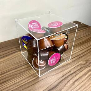 Fabricada em acrílico cristal de alta qualidade, essa caixa é transparente, permitindo visualizar facilmente quais são as cápsulas disponíveis. Além disso, o material utilizado na sua produção é facilmente lavável e higienizado, dispensando o uso de produtos químicos.
