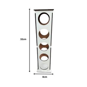 Altura: 34 cm Largura: 7,5 Torre / 8 Base Profundidade: 8 cm Material: MDF Capacidade: 20 cápsulas Não inclusas Marca: Móveis Trovarelli